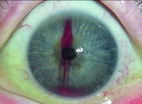 홍채염, 전방포도막염은 LI를 시행한 모든 눈에서 나타납니다.